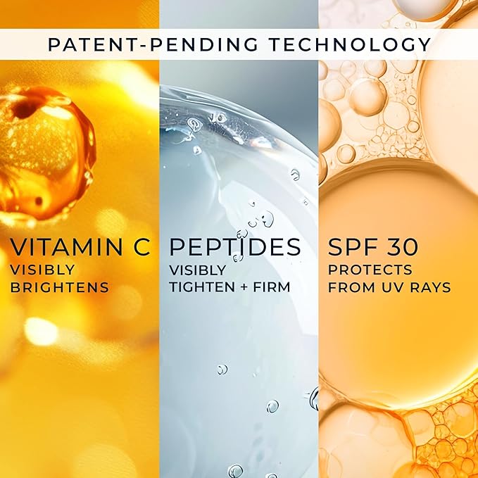 - VITAMIN C 2-IN-1 MOISTURIZER: This lightweight, non-greasy formula is clinically proven to deliver brighter, revitalized skin with NO WHITE CAST. Combines Dermatologist recommended Vitamin C (a potent antioxidant, to help brighten plus tighten skin) with SPF 30 (to shield from damaging UVA plus UVB rays and help prevent the signs of aging). Oxybenxone-free and Octinoxate-free.