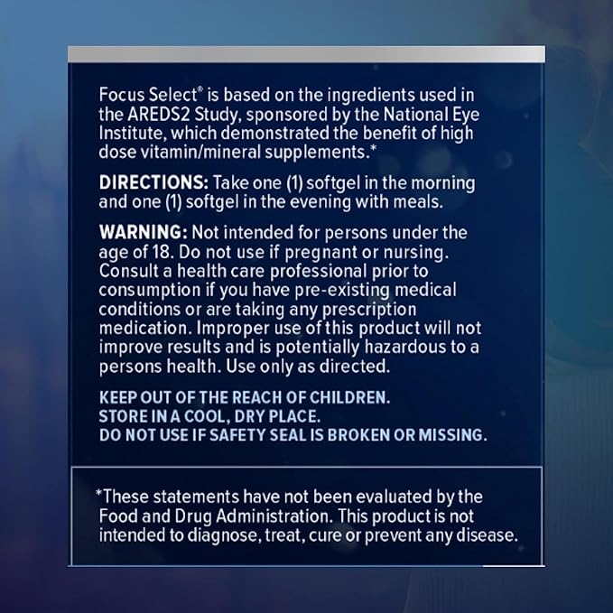- DEVELOPED AND RECOMMENDED BY EYE DOCTORS: The Focus Select AREDS2 based formula for macular health has been developed by eye doctors and formulated with nutrients proven to be beneficial in the AREDS2 study.