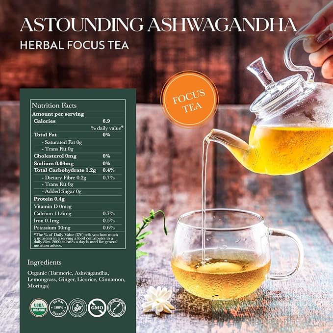 - ASHWAGANDHA HERBAL TEA : Whether you're seeking a moment of relaxation or looking to benefit from Ashwagandha's potential health advantages, Luxmi Estates' Ashwagandha Herbal Tea offers a delicious and soothing way to incorporate this ancient herb into your daily routine. With its nourishing qualities, this herbal tea can become an essential part of your wellness journey.