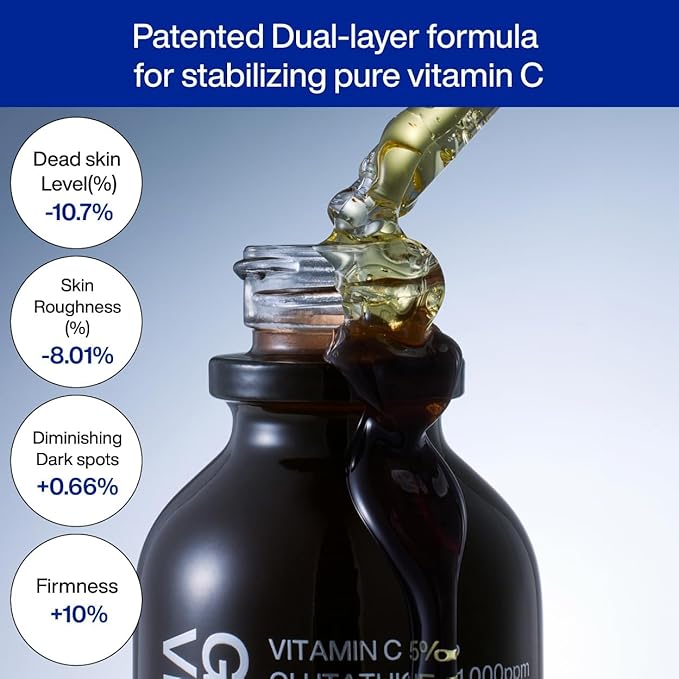 - HIGH POTENCY VITAMIN C & GLUTATHIONE : Contains 25% pure Vitamin C and 1,000ppm Glutathione for powerful brightening and anti-aging effects. Patented dual-layer formula of water and oil bases stabilizes Vitamin C, preventing rapid oxidation.