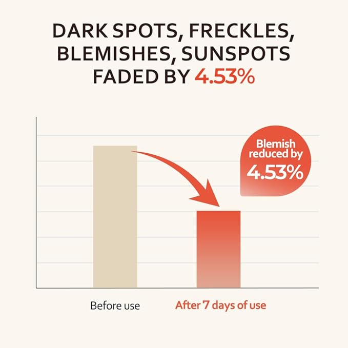- #7DayBlemishSerum addresses dark spots, freckles, blemishes, and sunspots at once with blood orange and niacinamide. Blood Orange which is high in vitamins and Niacinamide that tones up dull skin provide intensive tone-up care that makes changes in 7 days