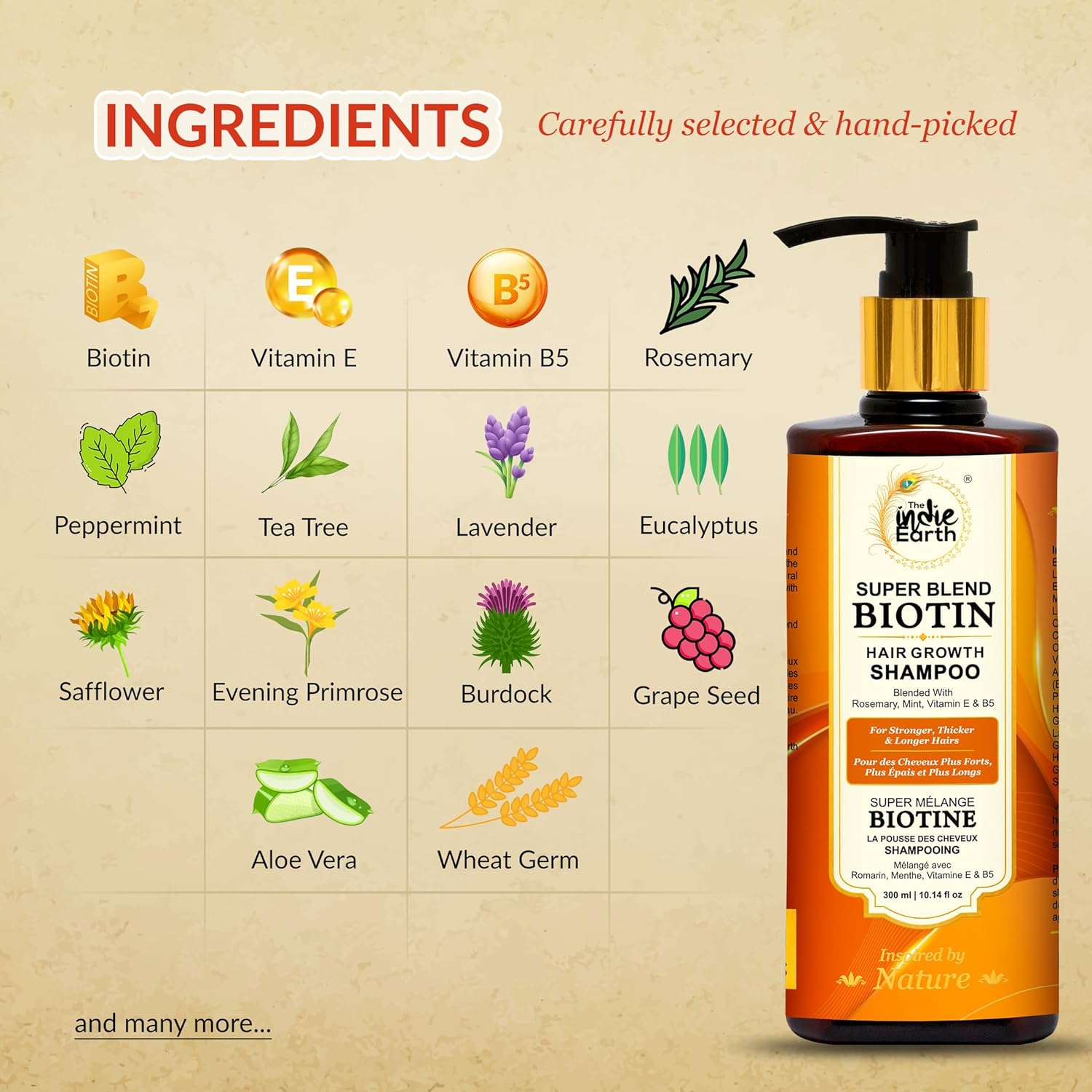 Rosemary Mint Biotin Hair Growth Shampoo for Stronger, Thicker & Longer Hairs with Vitamin E and B5 | Hair Growth Shampoo for Healthy Hairs, Contains NO SLS, NO SLES, NO PARABENS 300 mL