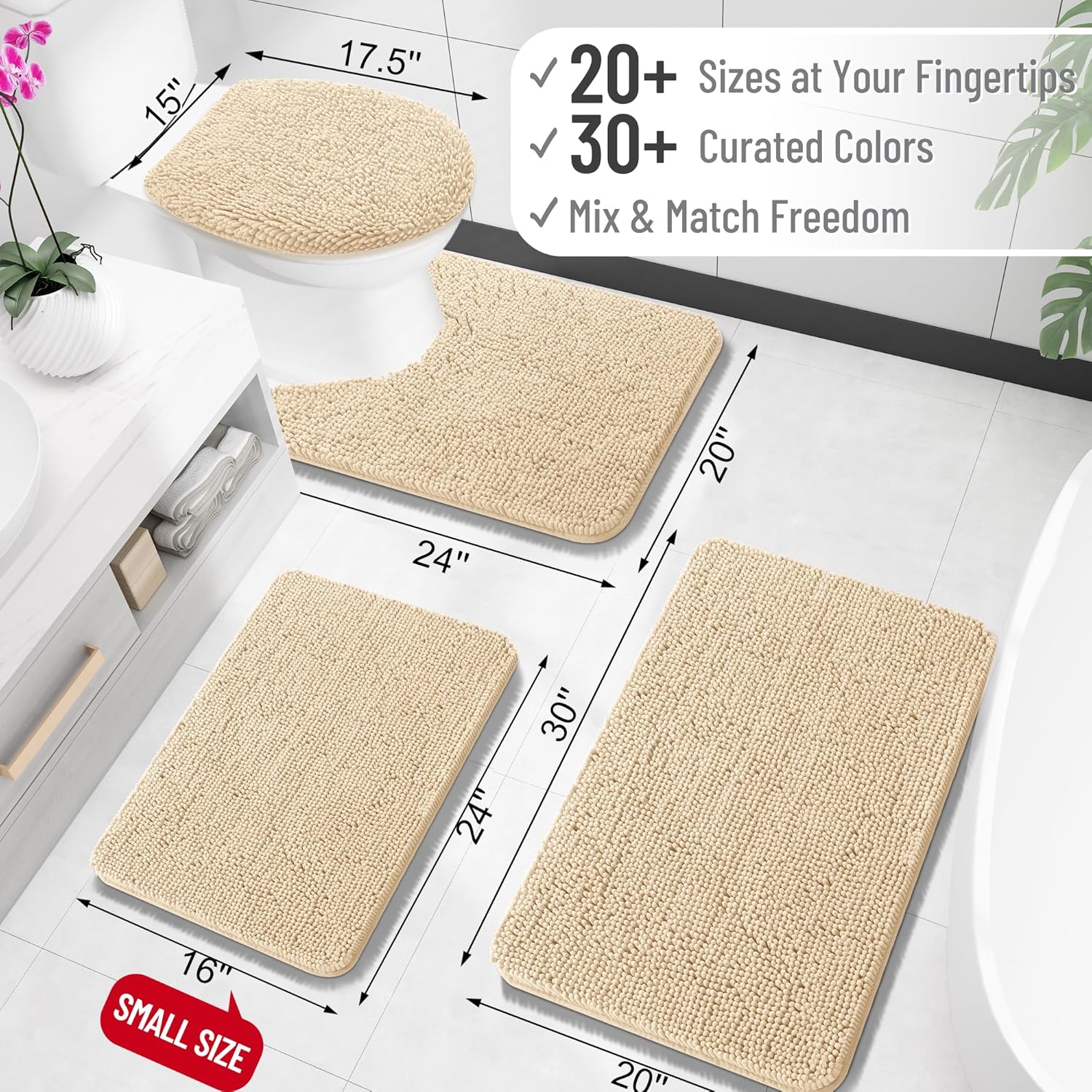 OLANLY Bathroom Rugs 24x16, Extra Soft Absorbent Chenille Bath Rugs, Rubber Backing Quick Dry, Machine Washable Bath Mats for Bathroom Floor, Tub and Shower, Home Decor Accessories, Beige