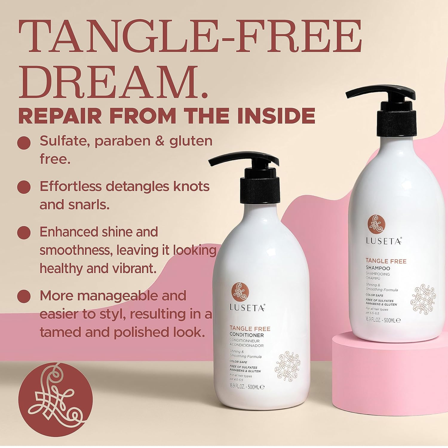 Luseta Tangle Free Routine Shampoo & Conditioner Set for Women and Men Sulfate Free Shampoo and Conditioner for Detangling with Keratin and Argan Oil, Color Safe for Curly and Wavy Hair 2 x 16.9oz