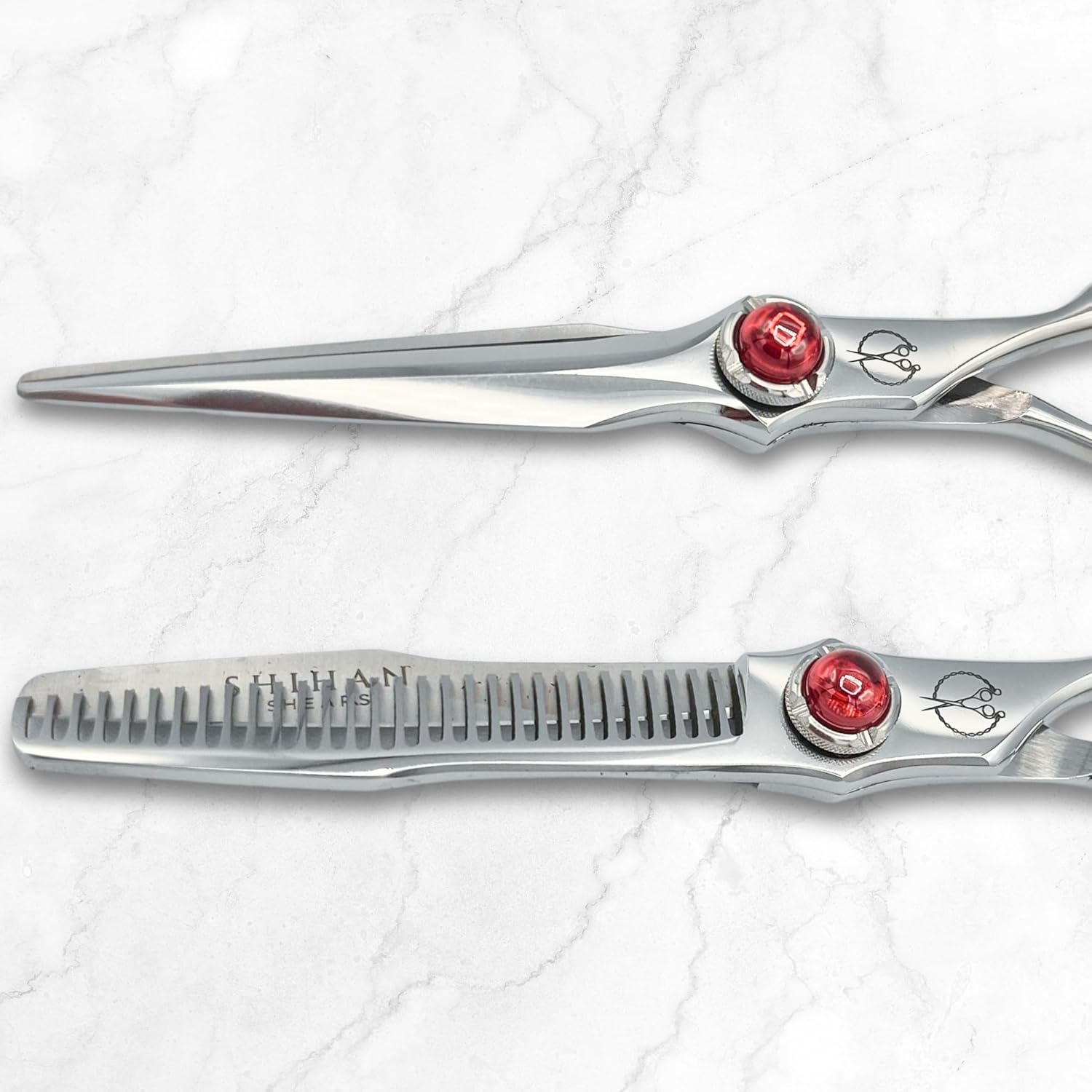 5.5" Professional Hair Shears Set Includes Cutting Scissors and Thinning Shears - VG10 Japanese Stainless Steel - Sharp, Ergonomic, Lightweight - Shihan Shears Red Moon (Hair Shears Set)