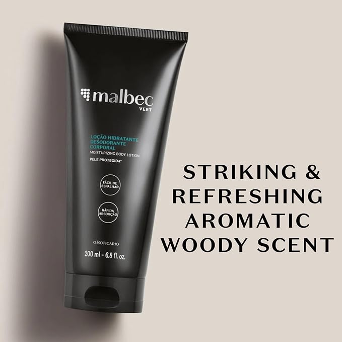 - Specially Developed - Malbec Vert Moisturizing Body Lotion was specially formulated for men, making it ideal for maintaining body hydration with the scent of Malbec Vert. Designed to repair and moisturize the rough appearance of dry skin