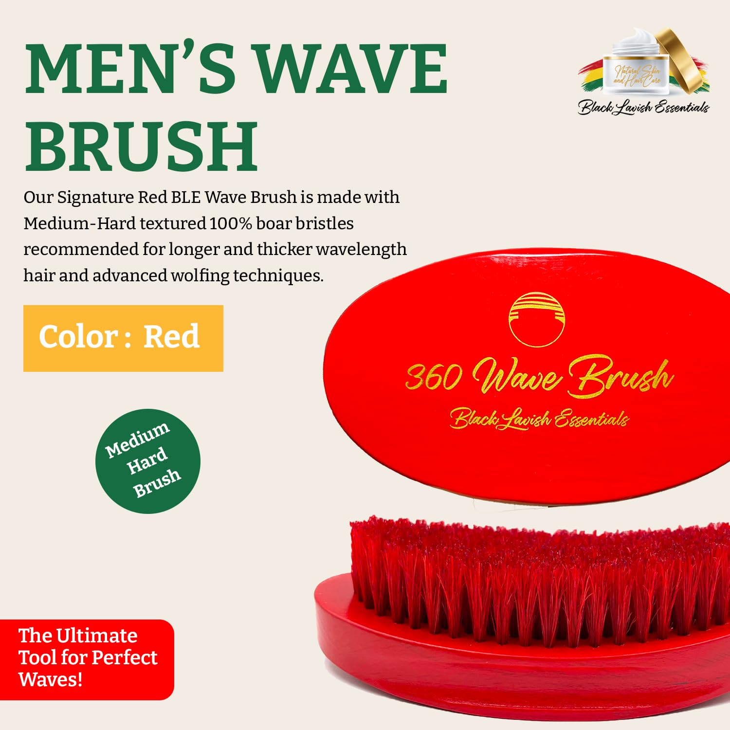 360 Wave Brush, Build Deeper Waves, Soft & Hard Boar Bristle Curved Brushes BLACK LAVISH ESSENTIALS (Medium-Hard, Red)