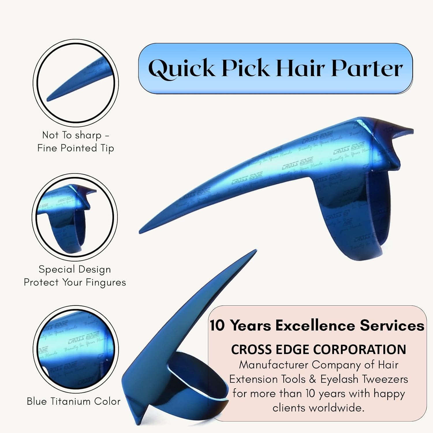 - ๐ Precision Hair Parting Tool - Cross Edge Corporation Professional Stainless-steel Tool for Precisely Parting Sections of Hair for Making Braids, Highlights, Weaves, Hair Color, And Installing Hair Extensions. You Know That Feeling When Your Hands Are Too Full? This Unique Tool Takes the Place of a Standard Tail Styling Comb and Makes Your Hair Extension Installations Much More Efficient!