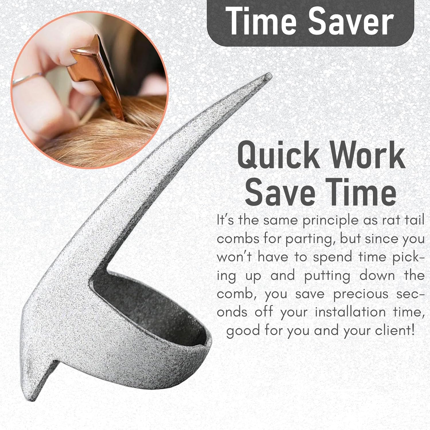 - Easy to Use - it’s the same principle as rat tail combs for parting, but since you won’t have to spend time picking up and putting down the comb, you save precious seconds off your installation time, good for you and your client! premium quality lightweight hair parting ring is made of high-quality stainless-steel material, strong and durable. hair beader tool is easy to put on & fasten hair extension applications. worn and taken off in one second, which is very convenient to operate and use.