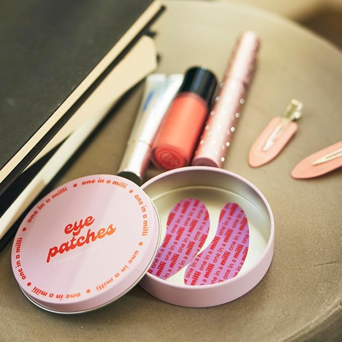 Milli Under Eye Mask to Treat Dark Circles, Wrinkles, and Puffy Eyes, 1 Pair of Original Pink Reusable Silicone Eye Patches with Tin Case