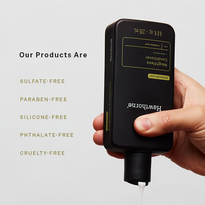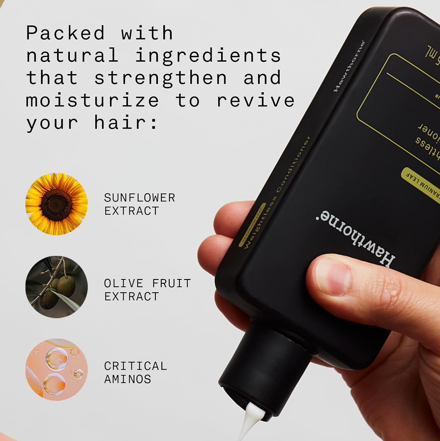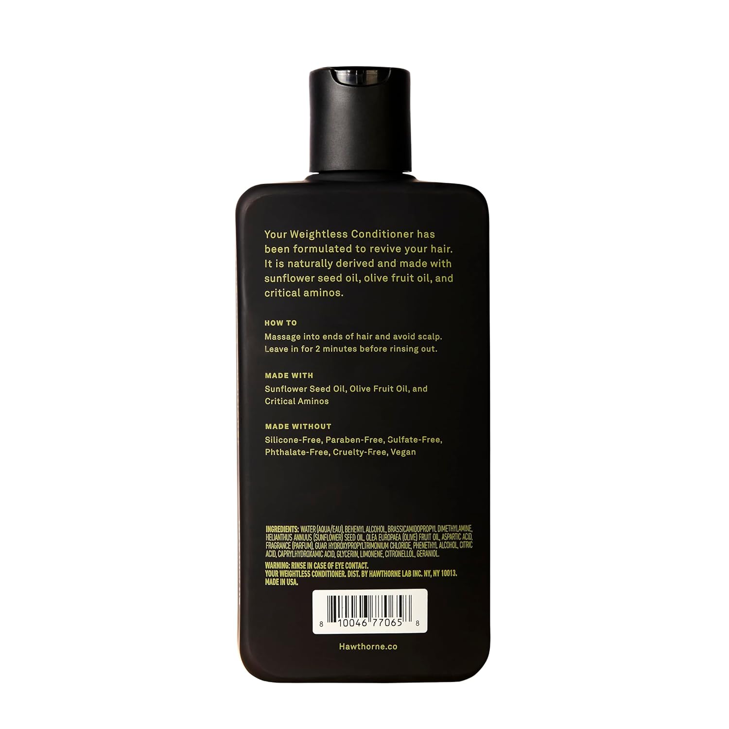 - FOR BEST RESULTS - Squeeze a small amount of our weightless conditioner into wet hair and massage into scalp with fingertips (not fingernails) after washing with our Hawthorne Thickening Shampoo. Cleanse and start strengthening your hair.