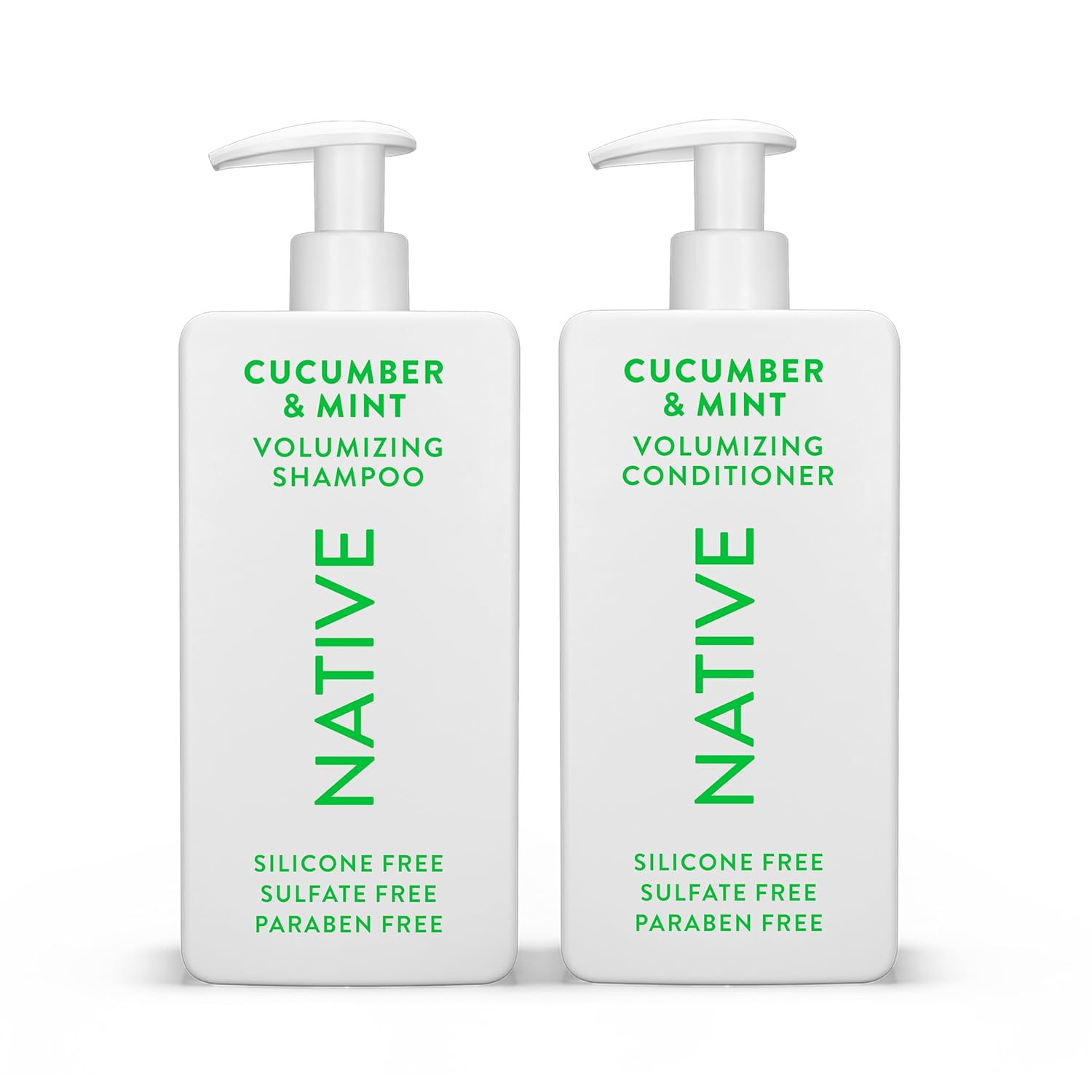 Native Shampoo and Conditioner Contain Naturally Derived Ingredients | All Hair Type Color & Treated From Fine to Dry Damaged, Sulfate & Dye Free - Cucumber & Mint, 16.5 fl oz each (2 pack)