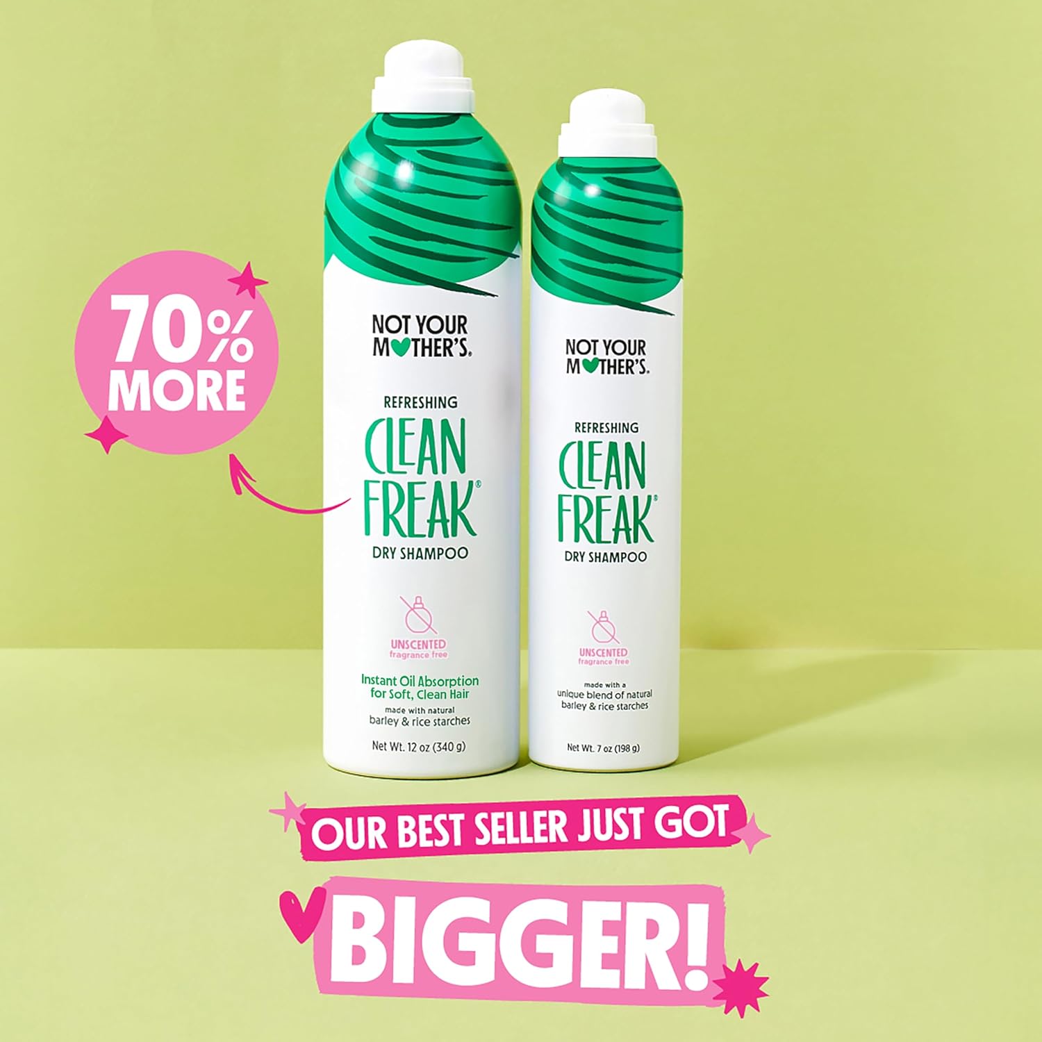 Not Your Mother's Value Pack Clean Freak Unscented Jumbo Dry Shampoo (2-Pack) - 12 oz Each - 70% More to Instantly Absorb Oil and Refresh Hair Between Washes - No Scent - For All Hair Types