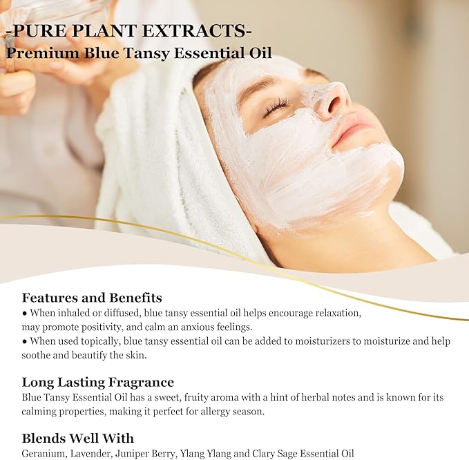 Blue Tansy Essential Oil 118mL/4oz Pure Blue Tansy Oil Premium Essential Oil for Diffuser, Soap Making, Skin Care with Glass Dropper