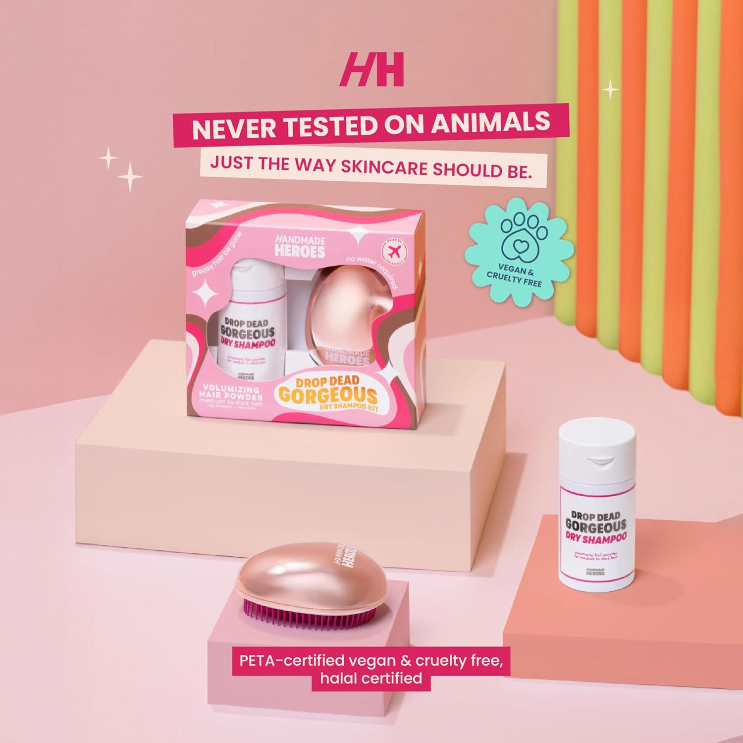 Handmade Heroes Non Aerosol Dry Shampoo Volume Powder 100% Natural & Vegan Volumizing Hair Powder For Light Hair and Blonde (Dry Shampoo and Brush Kit)