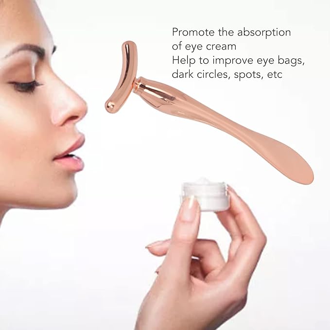 - DOUBLE HEAD DESIGN----With a thoughtful tail spatula, this facial massager tool is effortless to scoop the desired amount of eye cream. The T-shaped massage head is specifically crafted to lift and firm the skin on the face and neck, combating sagging and improving overall skin elasticity.