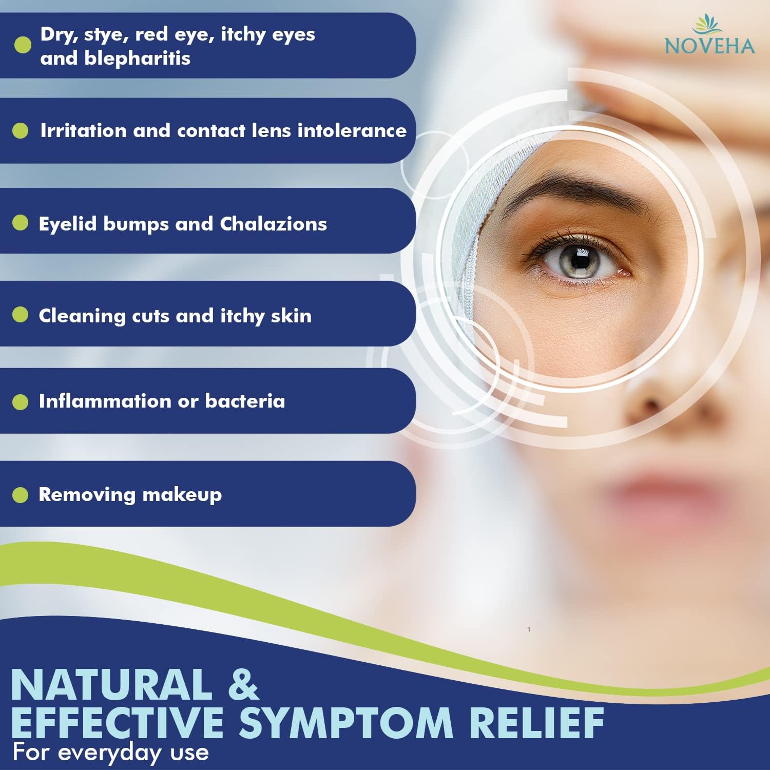 - YOUR DAILY EYE HYGIENE: We’ve got the solution for irritated and red eyes! Containing zero alcohol, safe and effective, these hypoallergenic eye wipes will pamper and clean your eyes. Provides immediate care and relief for itchy eyelids, irritated eyes. Specially formulated to be used as preparation for the NOVEHA Hypochlorous eye spray to maximize eyelid receptivity. Can also be used alone.