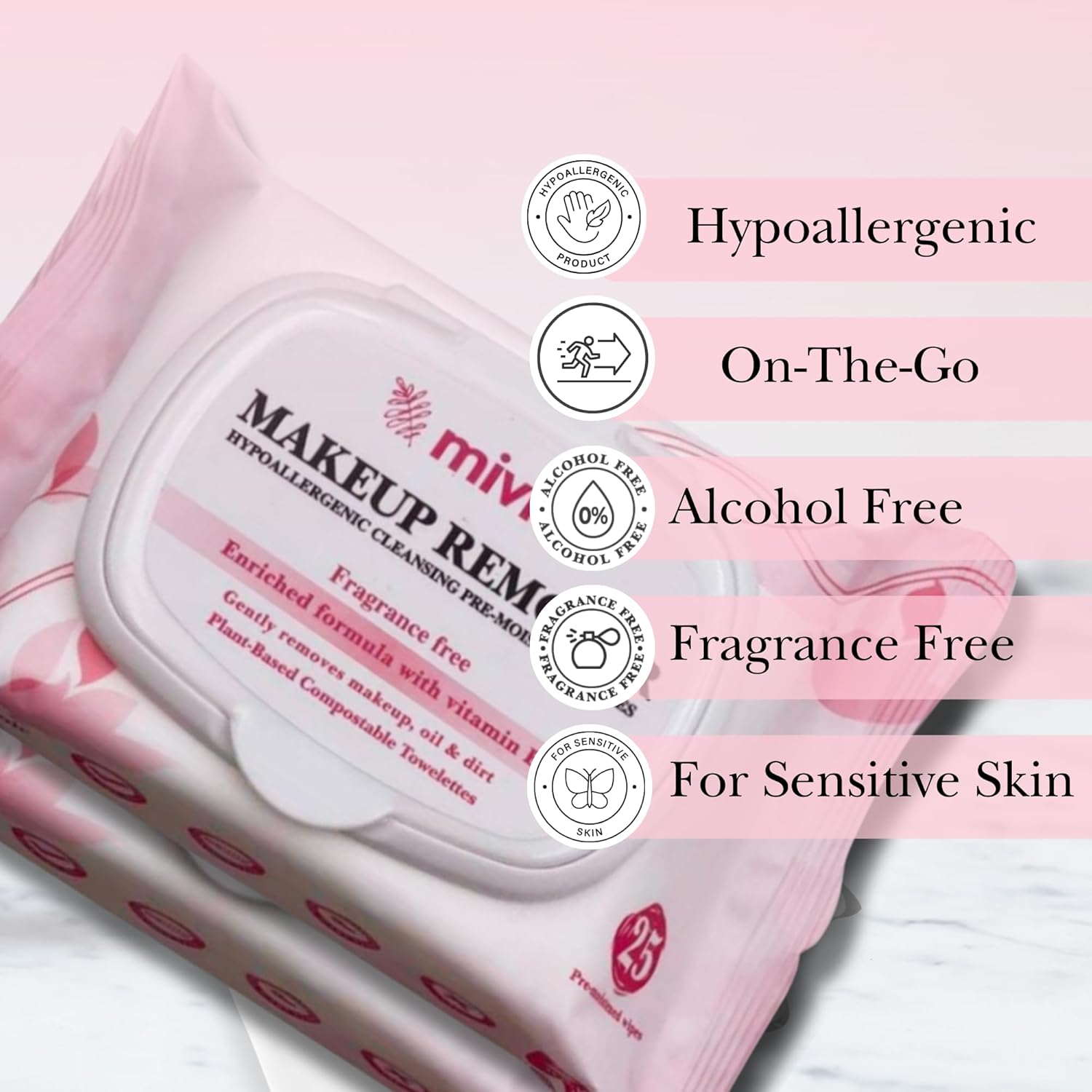 - ๐ฟHypoallergenic & Non-Irritating: mivida hypoallergenic makeup remover wipes sensitve skin removes makeup, dirt, oil, & impurities without irritation or leaving behind residue.