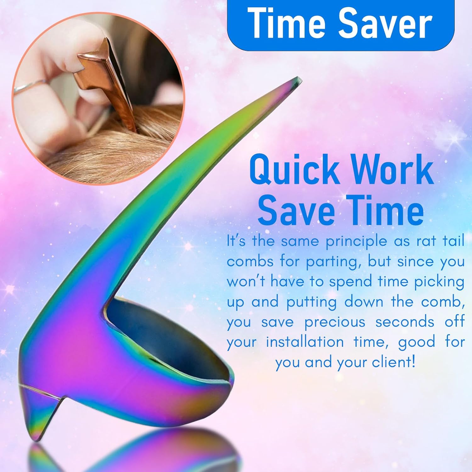 - Quick Hair Pick Parter - stop picking up and setting down your hair parting comb. instead, slide the hair parter onto your finger and use the point to section your client’s hair quickly and easily. this tool can be used for all of the extension methods as a replacement for the comb and to keep the extension sections clean! our stitch braid aid parting tool helps you to weave your braid hair quickly and efficiently as you want.