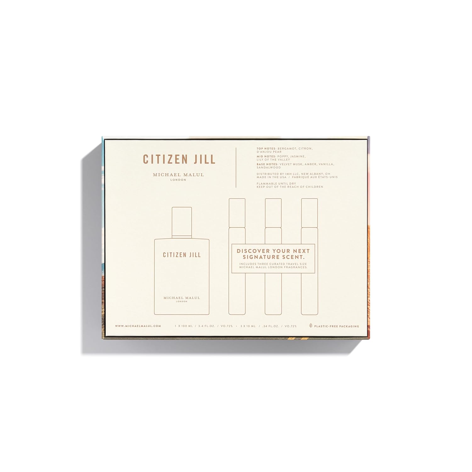 - Looking for the perfect present for the perfume lover in your life (or for yourself)? Explore our scent portfolio with our gift sets. Get a full size bottle of Citizen Jill and three travel size bottles handpicked by our team.