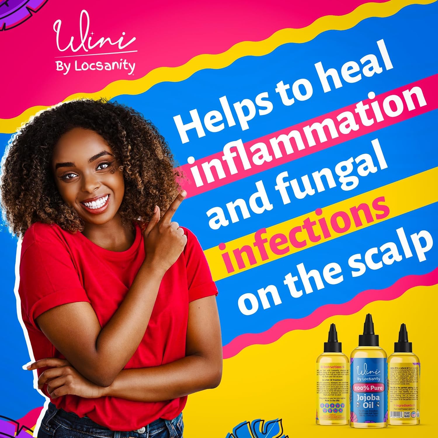 Locsanity Wini Pure 100% Jojoba Oil Organic Cold Pressed Unrefined Non-GMO - 4 fl oz: Moisturizing Face & Hair Oil for Growth, Skin Care, Strengthening & Nourishing