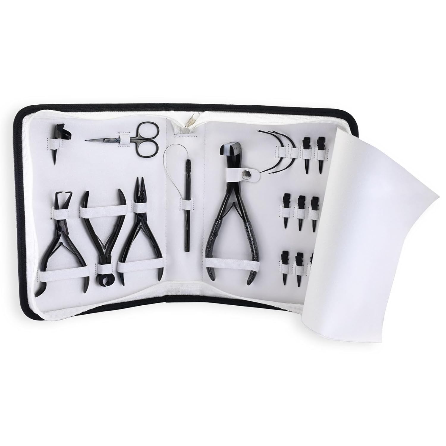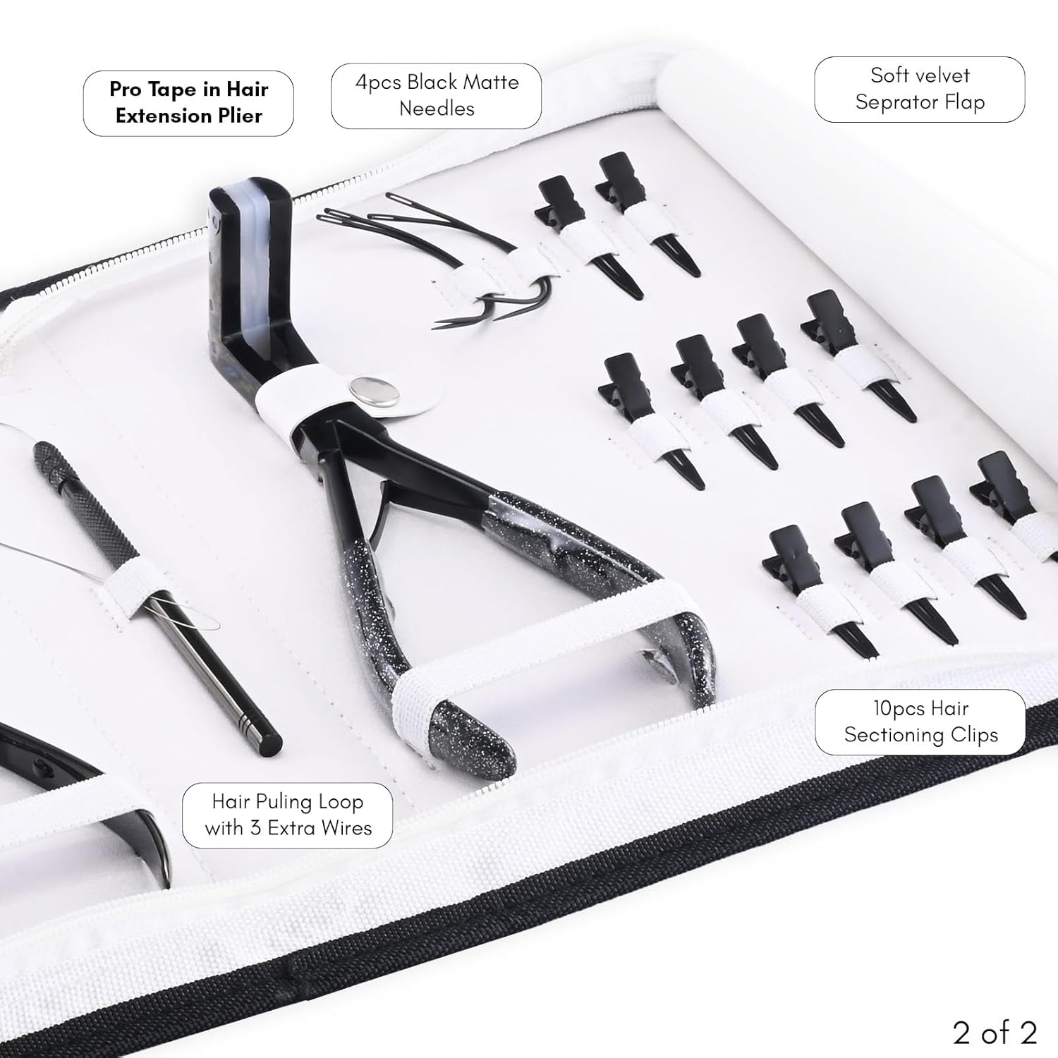 - ✅ Complete Hair Extension Tool Kit: Includes tape-in press plier, keratin bond cutter, 3-hole nano & micro ring crimping plier, Micro Beads Remover Plier, Hair Parting Tool, Thread Cutting Scissor, C type Needles, Sectioning Clips everything you need for I-tip, U-tip, tape-in, and microlinks.
