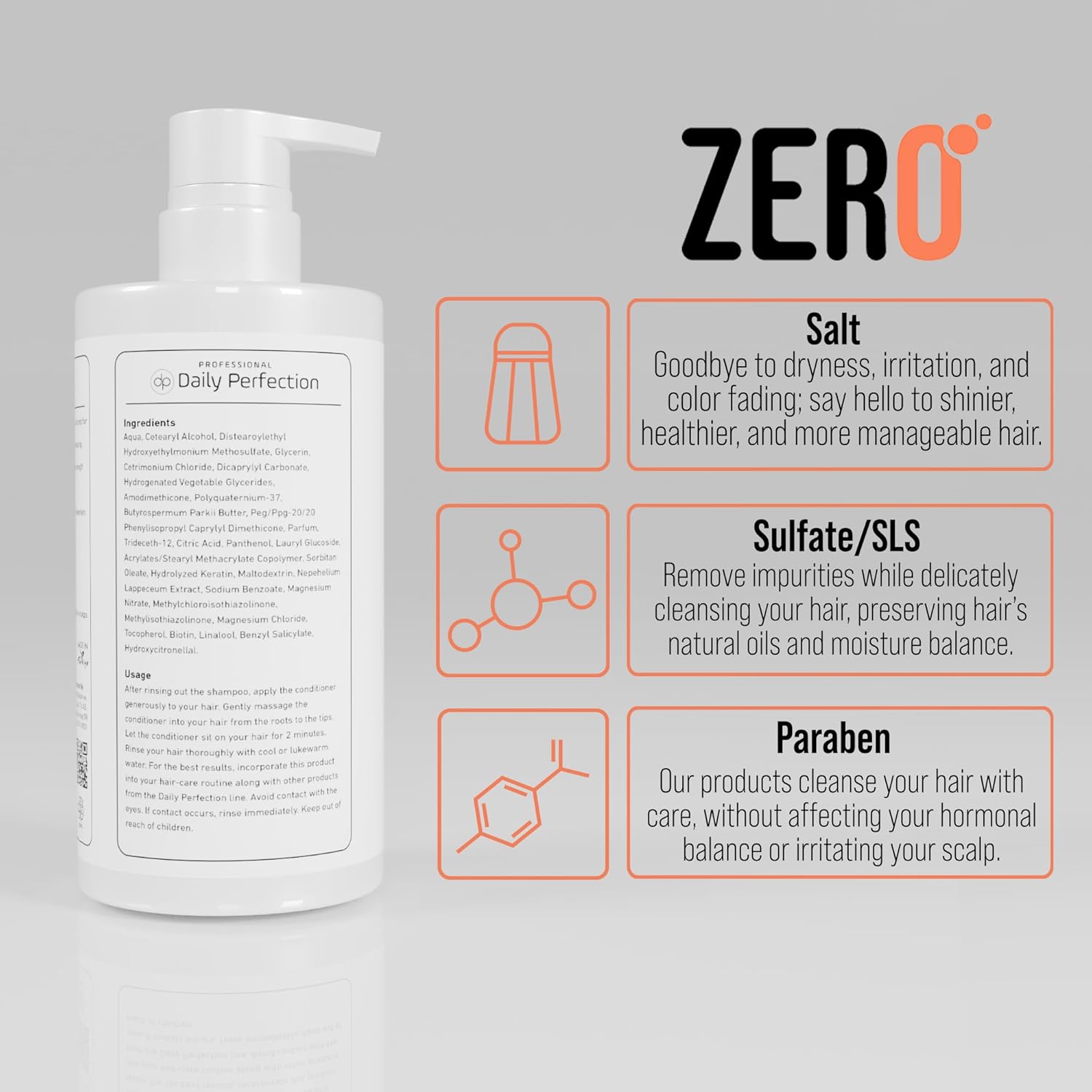 - Salt-Free, Sulfate-Free, Paraben-Free: Daily Perfection's formula is free from sulfates, parabens, and the harsh effects of salt. Our products offer a gentle cleanse that preserves your hair's natural oils.