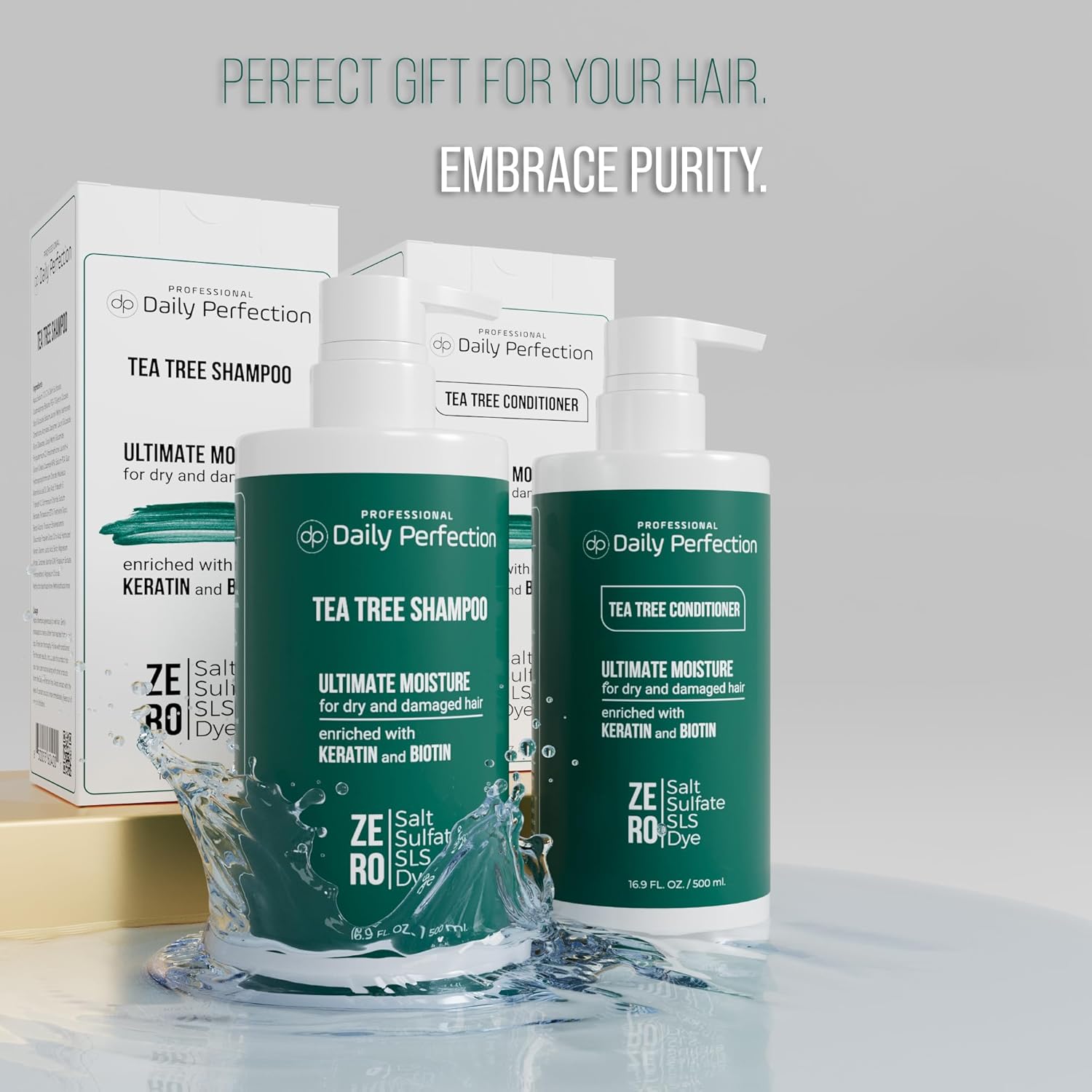 (dp) Tea Tree Shampoo & Conditioner – Hydrate & Soothe Dry Scalp and Hair – Clean + Salon-Grade Formula with Biotin & Keratin