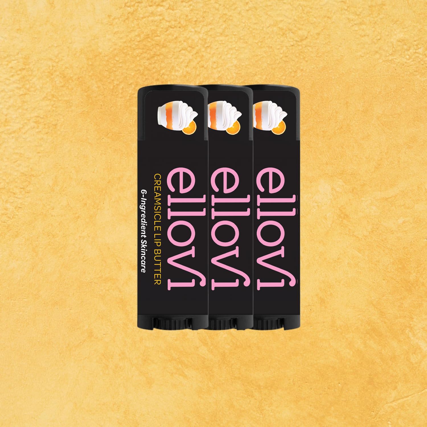 Ellovi Natural Lip Butter Lip Balm - Creamsicle - Pure Enough to Eat - Made With Just 6 Vegan Ingredients - 100% Natural & Organic Moisturizing Lip Care for All Day Hydration (3-Pack)