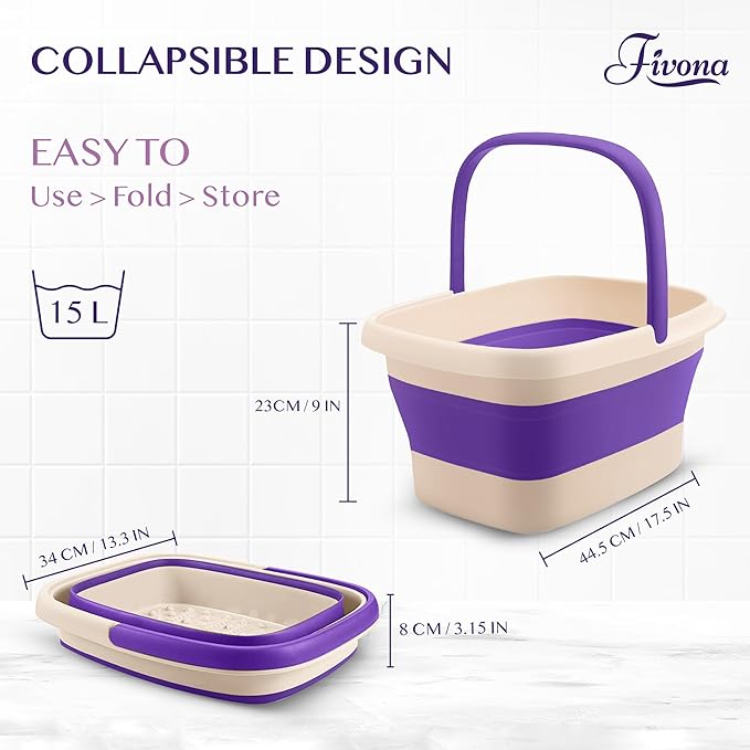 - Foldable Foot Soak Basin - Our Collapsible Foot Soak Tub is designed for your convenience and comfort. It's BPA-free and has massage rollers and bumps for a soothing massage experience. Fivona Foot Basin effortlessly expands to accommodate your feet comfortably during pedicure sessions. Fold it to a mere 3.15 inches for easy storage when not in use.