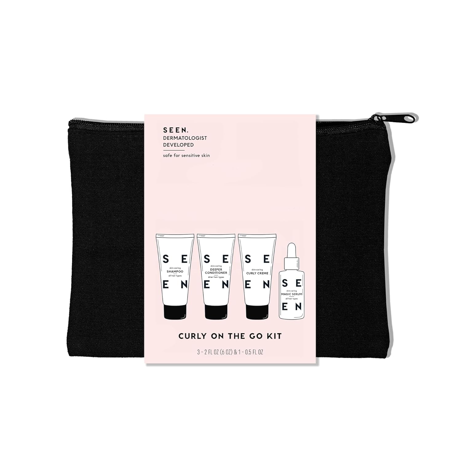 - A dermatologist-developed, vegan, non-comedogenic set for curly hair that features travel-friendly sizes of SEEN Shampoo, Deeper Conditioner, Curly Creme and Magic Serum.
