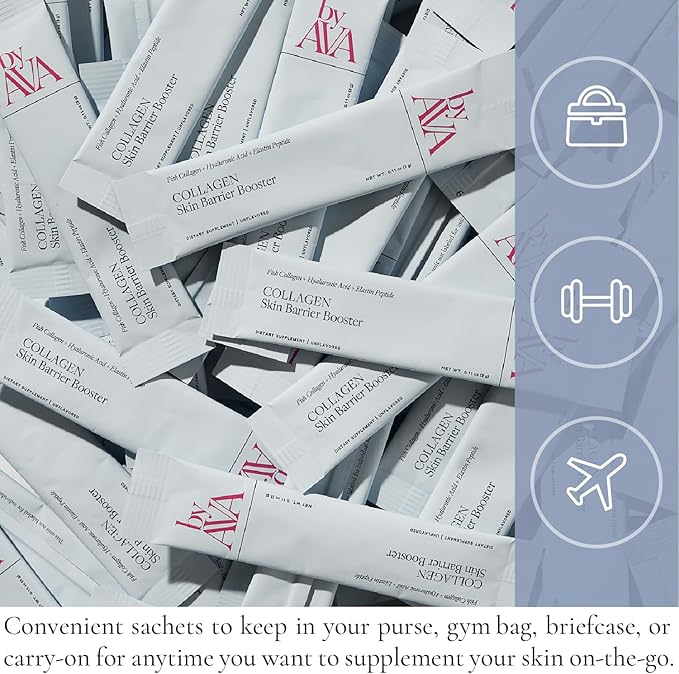Marine Collagen Powder Skin Barrier Booster | Unflavored Fish Collagen Peptides with Elastin, Hyaluronic Acid, Biotin & Vitamin C | 15 Travel Stick Packets