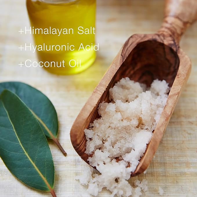- Exfoliating Body Scrub: This skin-softening micro scrub salt polish is crafted with a unique blend of Himalayan Sea Salt, Hyaluronic Acid, and Coconut Oil. Our salt-based formula is designed to help exfoliate, brighten, and smoothen your skin.