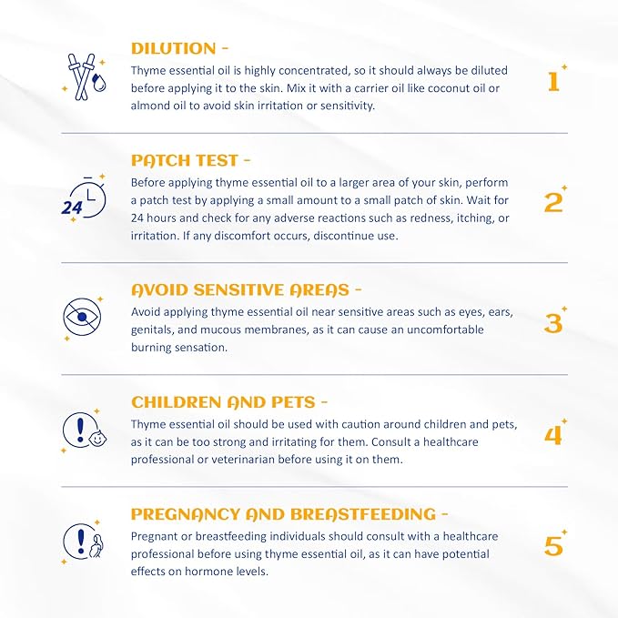 - Pure & Natural: Steam distilled from the thyme leaves from Spain, non-toxic, no additives, unfiltered and undiluted with no fillers