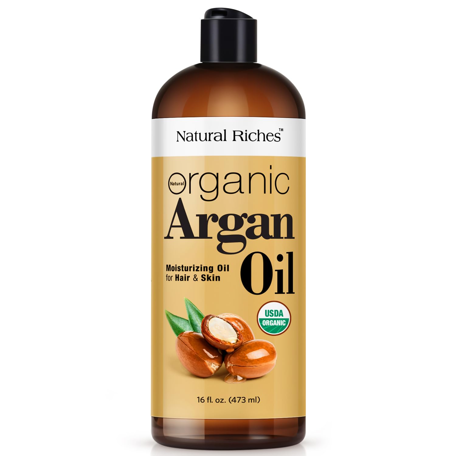Natural Riches Organic Argan Oil of Morocco 16oz Penetrating Hair oil Deep Moisturizing Serum for Dry, Damaged & Coarse Hair pure Moroccanoil Cold Pressed for Hair, Face and Body