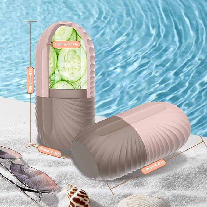- 3. Easy to Use: pour into clean water from the top hole and then place the silicone ice face roller in the freezer for a few hours, and it's ready to go. The shell stripes ensures a secure grip, allowing you to effortlessly glide the roller across your face, and neck. Enjoy a spa-like experience in the comfort of your own home.