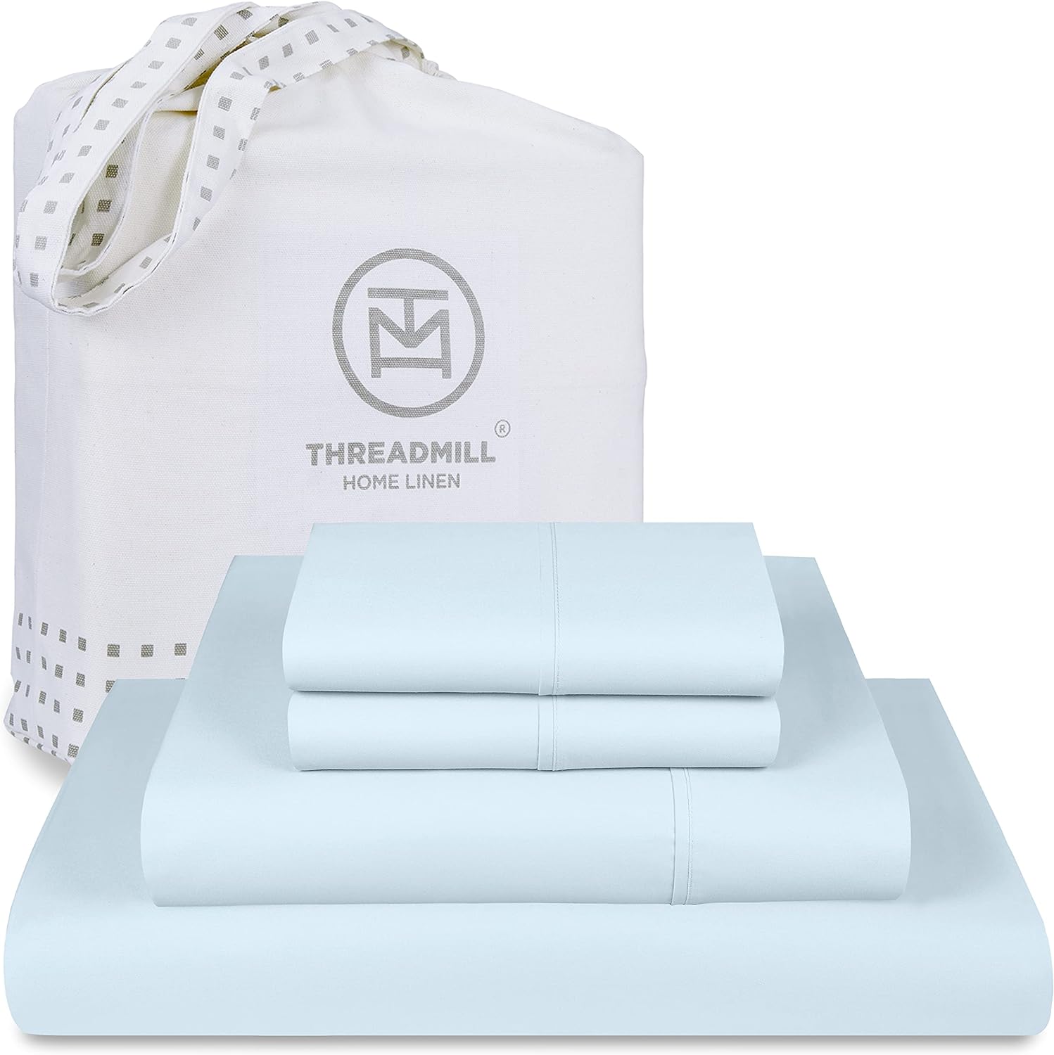Threadmill Cotton Full Size Sheet Set, Deep Pocket, Fade Resistance, 500 Thread Count, Solid 4-Piece Bed Sheets for Full Size Mattress (1 Flat, 1 Fitted Sheet, 2 Pillow Covers), Light Blue
