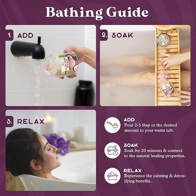 - ๐๐๐๐๐ง-๐๐ง๐ฌ๐ฉ๐ข๐ซ๐๐ ๐๐ฒ๐๐ซ๐๐ญ๐ข๐จ๐ง: Dive into the deep hydrating effects of our Sea Mineral Bath Salts, a luxurious blend of Dead Sea Salt, Epsom Salt, and hydrating minerals from Chlorella Algae and Spirulina Powder. Infused with Coconut Sugar and Irish Moss Extract, this bath soak is a hydrating retreat for parched skin, replenishing essential moisture and minerals.