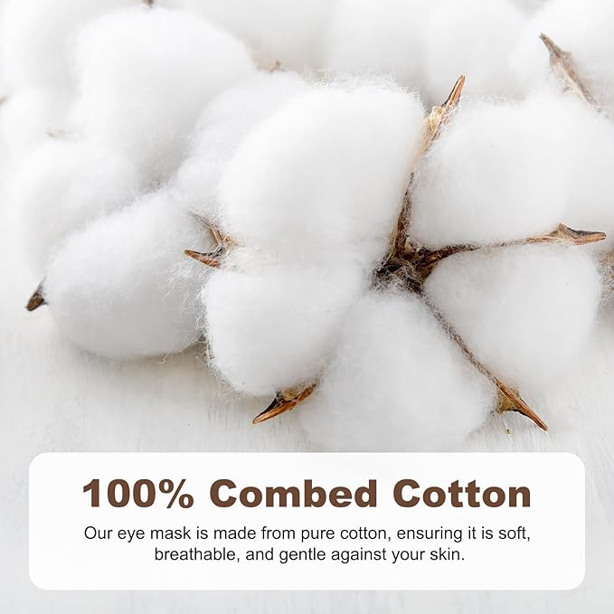 - 【100% Cotton Fabric】The heated eye mask is made of 100% Combed Cotton, ensuring maximum comfort and breathability. The material's softness and smoothness provide a good feel against the skin.