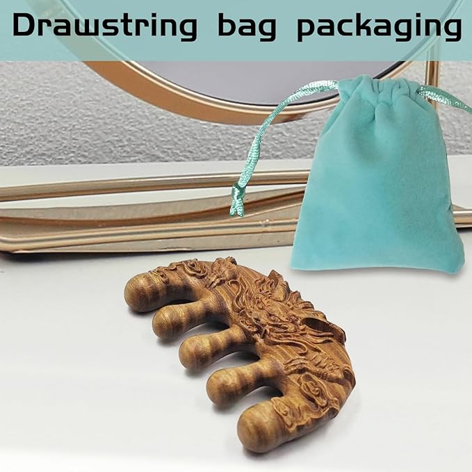 - High Quality Material: Natural Green Sandalwood Massage Comb. The smooth design, after multiple design revisions and upgrades, does not harm the scalp, does not cause pain, and has a faint woody fragrance. One whole piece natural Green sandalwood.Crafted with refined traditional handcrafts, well polished, smooth and seamless.