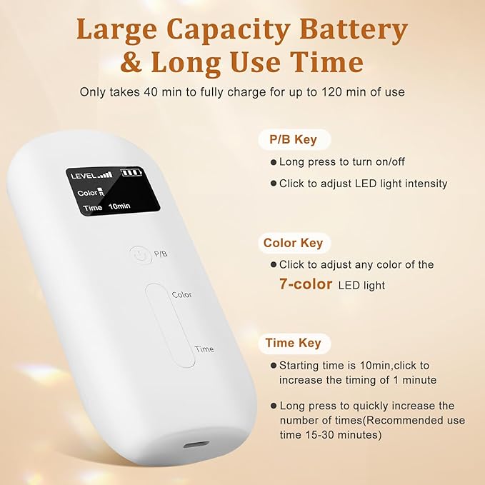 - 【LED Light Therapy Beauty】It uses LED natural light waves to transmit to the skin, promote the growth of skin collagen,tighten pores, make the skin,firmer,effectively accelerates skin metabolism and accelerates the wound healing process. No needles required,safe,fast treatment and skin protection.
