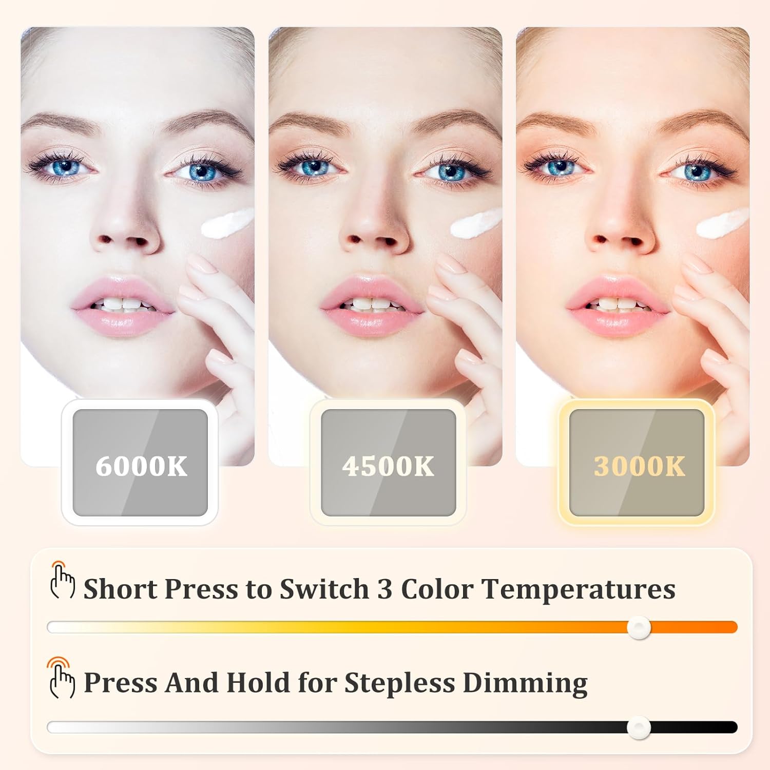 - 【Makeup Case with 3 Color Lights】We installed a makeup mirror with light on the make up bag. Featuring touch buttons, you can effortlessly switch between 3 color lights (white / natural / warm) and adjust brightness from 0% to 100%, ensuring personalized lighting tailored to any environment, allowing you to achieve the perfect lighting.