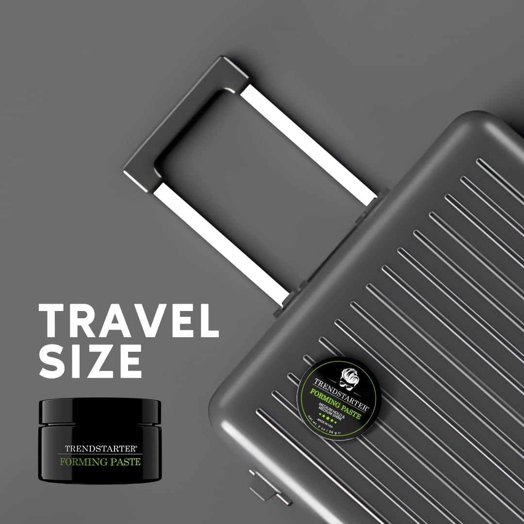 - TRAVEL SIZE - SHINE AND STYLE, ALL-IN-ONE - Add a healthy shine to your hairstyle with TRENDSTARTER's Forming Paste now in a travel friendly 2oz size. Perfect for on-the-go.
