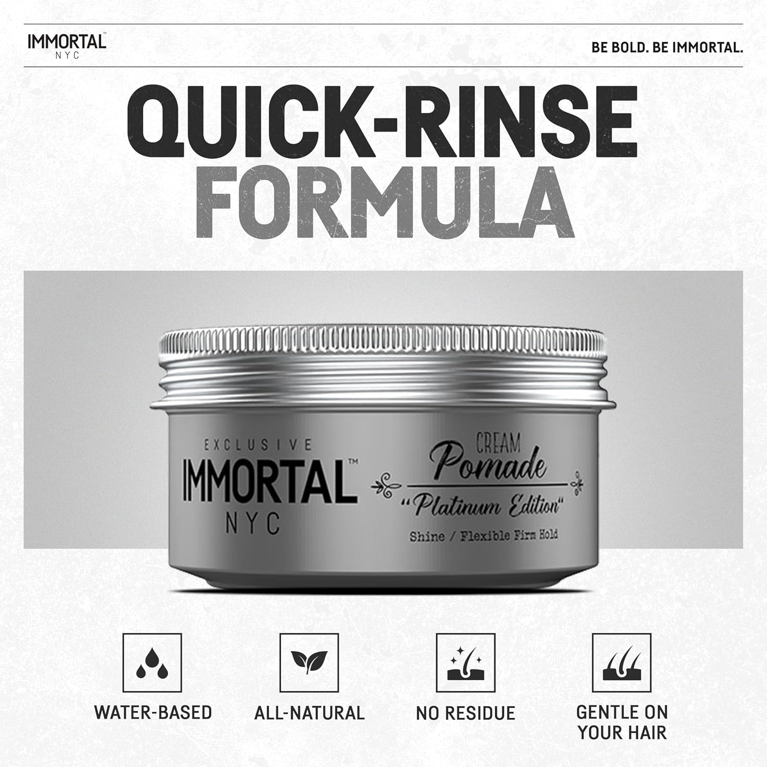 Immortal NYC Hair Styling Cream Pomade Platinum Edition - Mens Water Based, No Residue Hair Balm - All Natural Pomade -Strong Firm Hold - Gel for All Hair Types