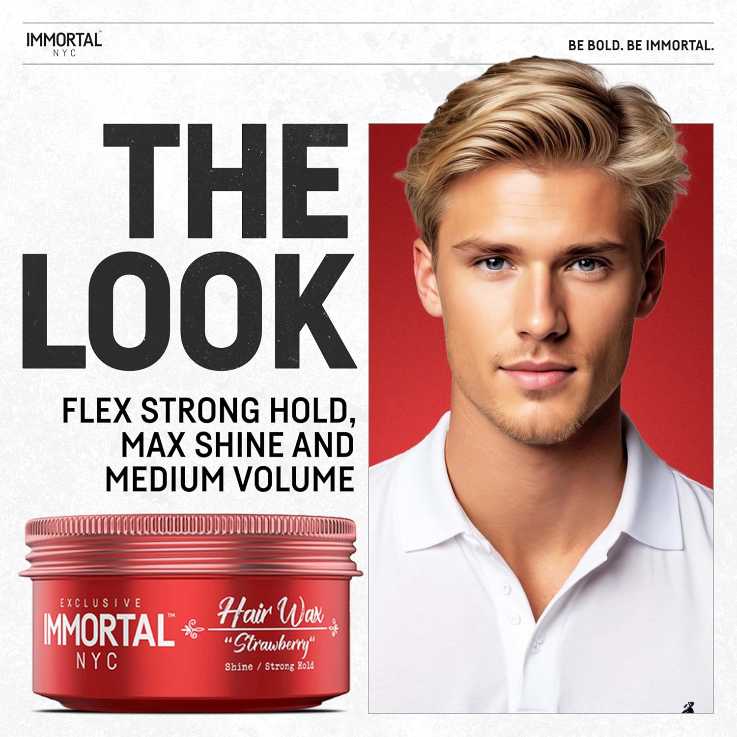Immortal NYC Strawberry Hair Wax - 8 out of 9 Holding Ability, Max Shine - All Natural Water-Based Hair Wax for Men - No Residue, All Hair Types