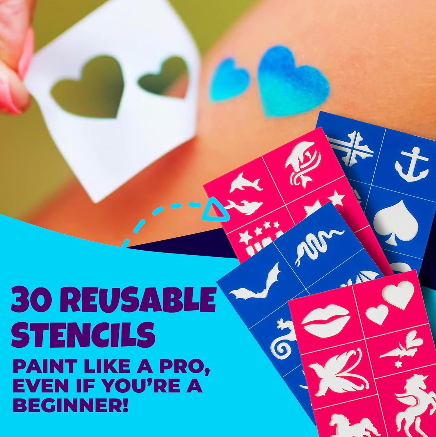 - πΆ πππ‘π§ππ ππ’π₯ π¦ππ‘π¦ππ§ππ©π π¦πππ‘: Gentle on sensitive skin, our water-based body paint for skin and face paints are EU & US compliant, baby safe, and crafted with cosmetic-grade, hypoallergenic, paraben-free, vegan ingredients. Easily create and remove glowing designs, perfect for kids' parties or Halloween makeup that stands out in the dark.