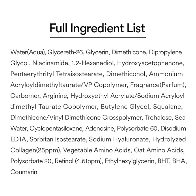 - - Fast-Absorbing Retinol Eye Serum with Marine & Plant Collagen – The low-molecular-weight marine collagen absorbs quickly, providing long-lasting hydration & elasticity, while plant-based collagen helps firm & lift the under-eye skin.
