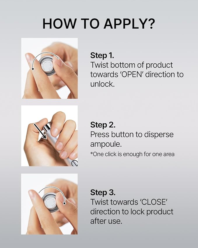 - PRO-TIP: If it is your first time using the product, you may need to prime the pump. To do this, press the button several times until serum starts to come out.