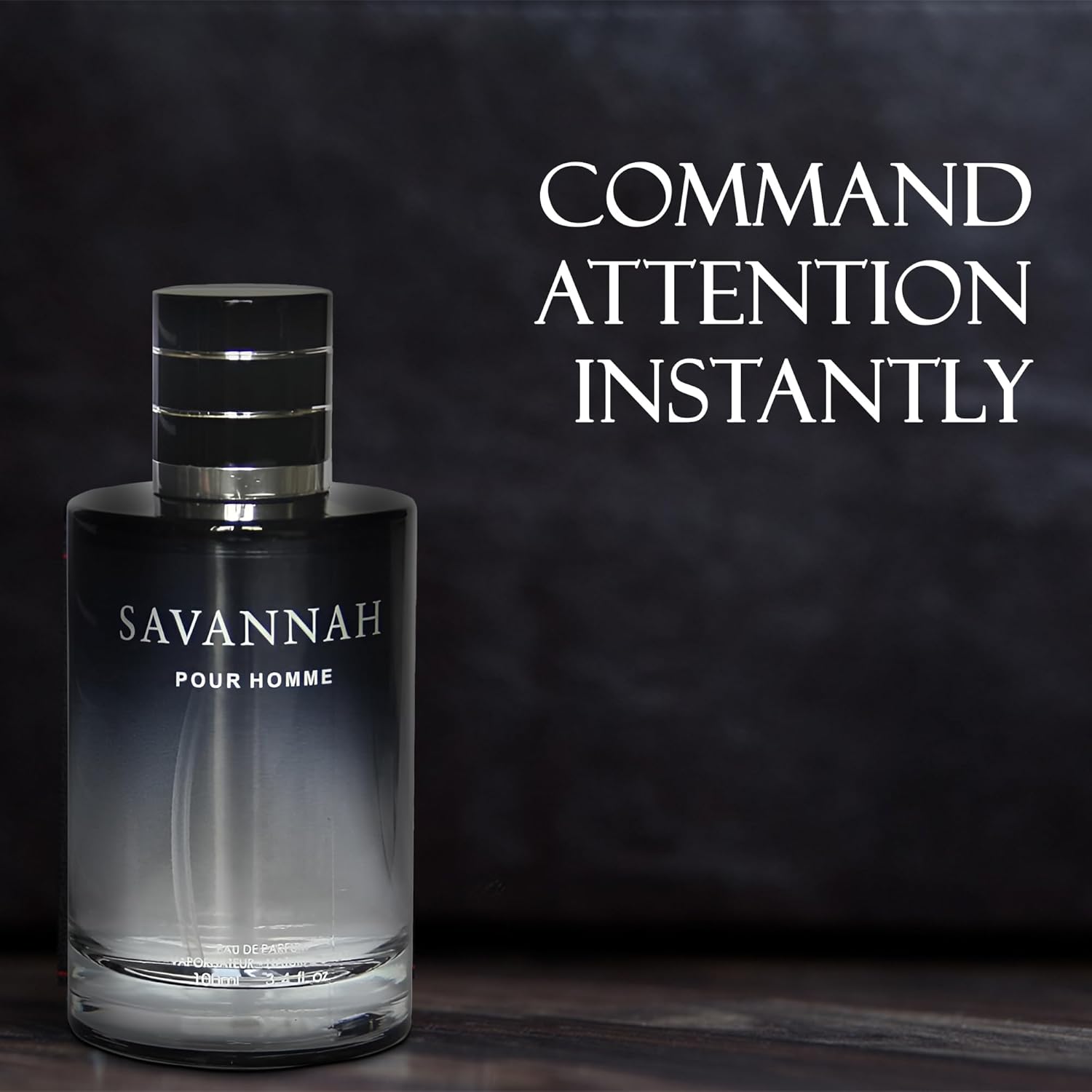 Savannah Cologne for Men Natural Spray Perfume Classic Scent Eau De Toilette for Daily Use 3.4 Fluid Ounce