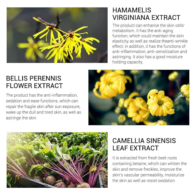 - Contains 7 kinds of herbal extracts: Centella Asiatica, Angelica Sinensis, Polygonum multiflorum, Litchi chinensis, Gardenia Jasminoides, Camellia Sinensis, and Menthol